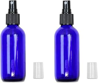 2PCS 100ML 3.5OZ vide bleu rechargeable en verre bouteille de pulvérisateur de brume fine avec arroseur noir et couvercle transparent parfum Aromatherapy toner Atomizer Jar contenant de cosmétiques