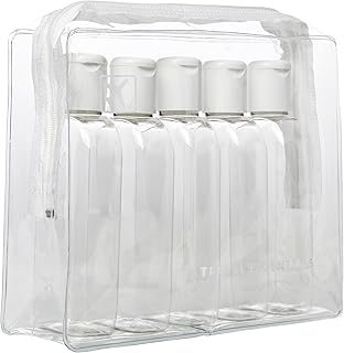 Plastic Airline / Flight Travel Cabin Bottles 100ml 5/Pk - Toiletry Case & 5 Bottles - Airport Security Approved