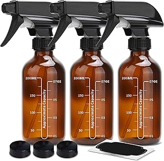 ULG Flacons vaporisateurs en verre ambré 226,8 ml Bouteille ronde Boston Robuste Noir Pulvérisateur avec brume, flux pour huiles essentielles, produits de nettoyage et aromathérapie ambre 3 Pieces
