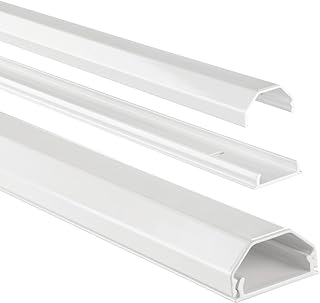 RICOO Z1110-W Cache Câble Canal de Cables pour TV et Ordinateur Guide-câbles en Aluminium Fixations Mural ou de Sol Conduit de Cables Blanc 110cm