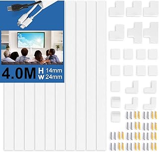 10 pièces chemin de câbles auto-adhésif blanc | Cache-câbles PVC 400cm, goulotte de câbles pour cacher les câbles | Télévision par câble