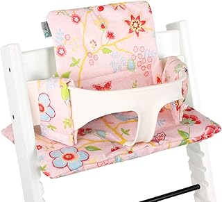 Ukje Coussin pour Chaise Haute Bebe Stokke Tripp Trapp (ancien et nouveau modèle) 2 Pièces Coussin OEKO-TEX® Standard 100 Housse Rehausseur Plastifié Pratique Facile à Nettoyer Fleuri