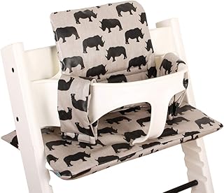 Ukje Coussin pour Chaise Haute Bebe Stokke Tripp Trapp 2 Pièces Coussin OEKO-TEX® Standard 100 Housse Rehausseur Plastifié Pratique Facile à Nettoyer Rhinocéros Gris