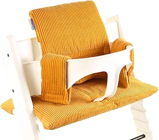 Ukje Coussin pour Chaise Haute Bebe Stokke Tripp Trapp 2 Pièces Coussin OEKO-TEX® Standard 100 Housse Rehausseur Velours côtelé Pratique Facile à Nettoyer Ocre