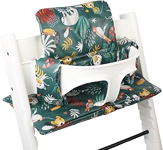 Ukje Coussin pour Chaise Haute Bebe Stokke Tripp Trapp (ancien et nouveau modèle) 2 Pièces Coussin OEKO-TEX® Standard 100 Housse Rehausseur Plastifié Pratique Facile à Nettoyer Jungle