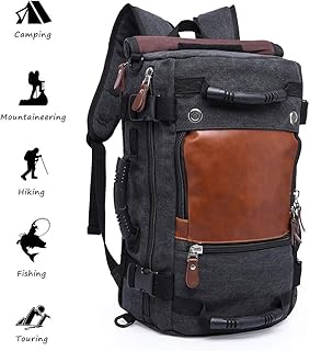 2 in 1 Sac à Dos Loisirs rétro Rucksack Hommes Femmes Accueillir Un Ordinateur Portable de 15.4 Pouces Sac d‘Epaule pour Travail Voyages École Randonnée ou Camping-Noir