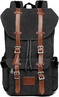 Sac à Dos en Toile Vintage Sac a Dos Homme Sac de l'école Sac de Randonnée Voyage Camping Sac à Dos pour Ordinateur Portable 14 Pouces (Toile Noir)