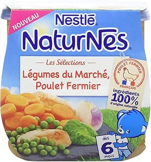 Petit pot NaturNes® Légumes du Potager, Pâtes, Jambon (2x200g) 4.6. (10) Dès 12 Mois. En savoir plus. De 8 à 36 mois. Produit. Ingredients, allergens, additives, nutrition facts, labels, origin of ingredients and information on product NESTLE NATURNES Petits Pots Bébé Petits Pois -2x130g -Dès 4/6 mois - 260 g