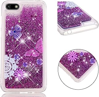 HopMore Coque Huawei Y5 2018 Silicone Paillettes Glitter 3D Antichoc Souple Etui Transparente Motif Strass Liquide Ultra Mince Fine Case Housse pour Fille Femme - Papillon Violet