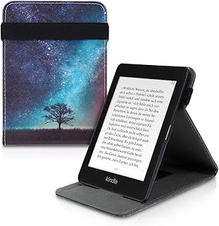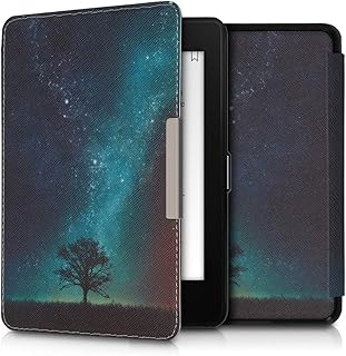 kwmobile Étui pour liseuse Compatible avec Amazon Kindle Paperwhite (10. Gen - 2018) - Housse Rabat liseuse en Simili Cuir Arbre Cosmique Bleu-Gris-Noir