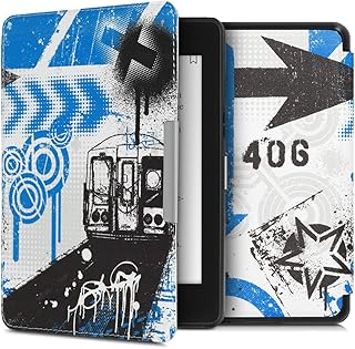 kwmobile Étui liseuse Compatible avec Amazon Kindle Paperwhite (10. Gen - 2018) - Housse avec Rabat magnétique en Simili Cuir - Graffiti Bleu-Noir-Blanc