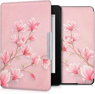 kwmobile Étui liseuse Compatible avec Amazon Kindle Paperwhite - Housse avec Rabat magnétique en Simili Cuir - Magnolias Rose Clair-Blanc-Rose Ancien