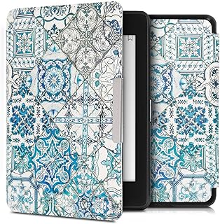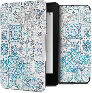 kwmobile Étui liseuse Compatible avec Amazon Kindle Paperwhite - Housse avec Rabat magnétique en Simili Cuir - Morrocan Vibes Bleu-Gris-Blanc