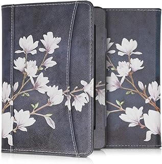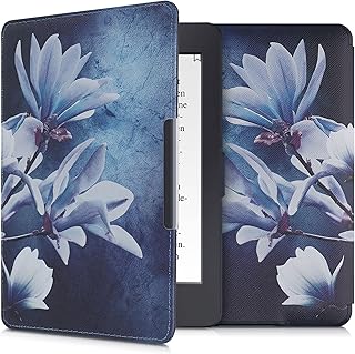 kwmobile Étui liseuse Compatible avec Amazon Kindle Paperwhite (10. Gen - 2018) - Housse avec Rabat magnétique en Simili Cuir - Magnolias Taupe-Blanc-Bleu-Gris