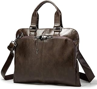 Sac à Bandoulière en Cuir Véritable pour Homme Sac à Bandoulière en Cuir de Vache Grainé Sac à Main d'affaires avec Poignée Supérieure et Réglable pour L'école, Les Voyages, Le Shopping