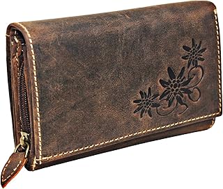 Frederic Johns - Portefeuille Femme Cuir - Porte Monnaie Femme en Cuir - Portefeuille en Cuir véritable - Portefeuille Femme - Look Vintage - modèle Angel (Marron)
