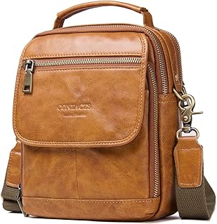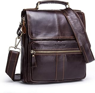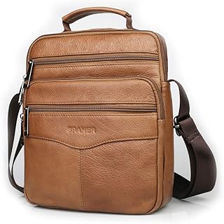 Sac à bandoulière en cuir véritable hommes, sac à bandoulière Messenger sac à dos pour les livres Kindle Ipad Tablet(Brown)