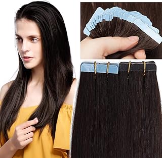 SEGO Bande Adhesive Extension Naturel Tape In Remy - 55 CM 02#Châtain Foncé [2.5g X 10 Bandes] - Extensions Adhésif Vrai Cheveux Humain