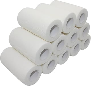 Bandage Cohesif 5 cm x 4,5 m Bandage élastique auto-adhésif 12 Rouleaux Bande Cohesive Bandage Medical et Vet Wrap pour tatouage,animaux de compagni,Premiers Secours Sports (blanc)