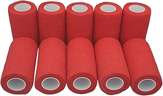 PintoMed Bandage Cohésif - 10 x Rouge - tendue 10 Rouleaux x 10 cm x 4,5 m adhésif Flexible Bandages, Premiers Secours Sports Wrap Bandage - Lot de 10